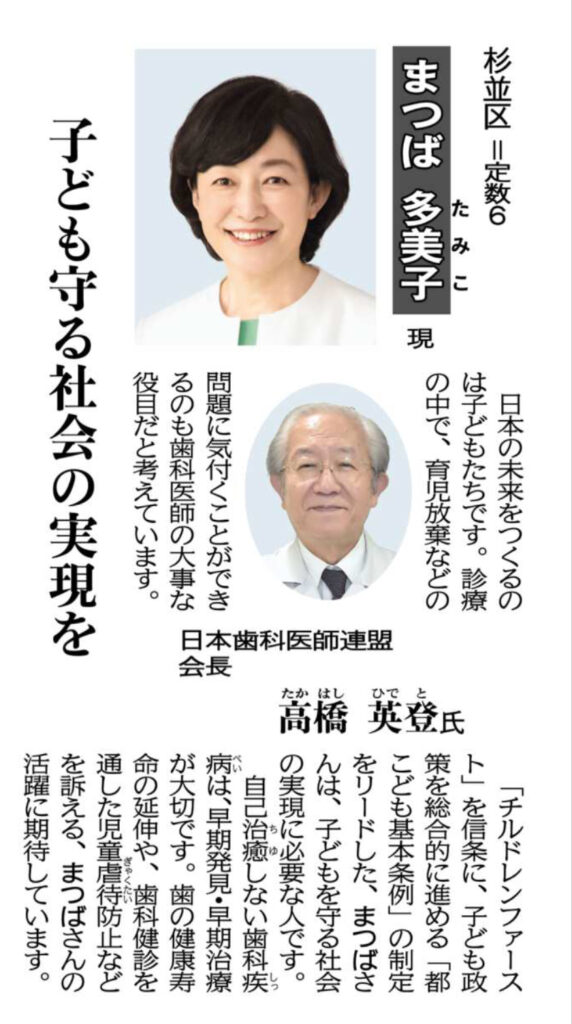 「チルドレンファースト」を信条に、子ども政策を総合的に進める「都こども基本条例」の制定をリードした、まつばさんは、子どもを守る社会の実現に必要な人です。