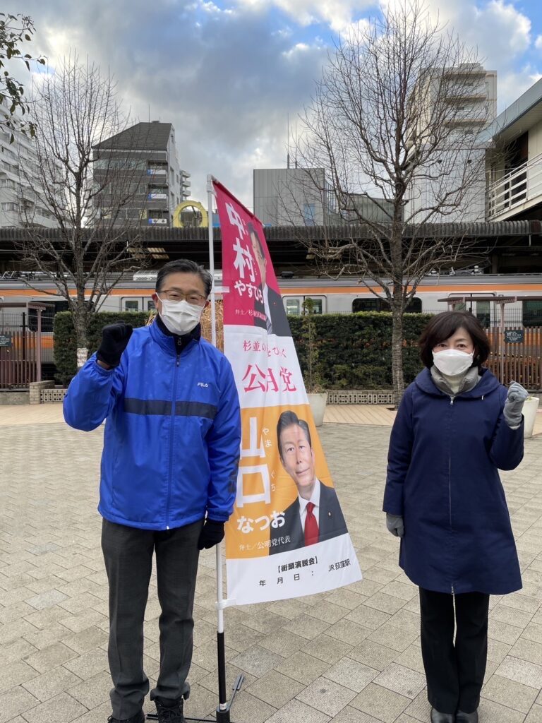 中村やすひろ区議とともに荻窪駅前で一年の御礼を