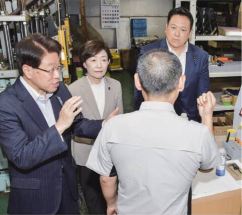 東京都議会公明党は2日、中小企業が生産性の向上で賃上げにつなげる好事例を調査するため、荒川区内にある中小企業「株式会社日興エボナイト製造所」を訪れ、遠藤智久代表取締役から話を聴いた。